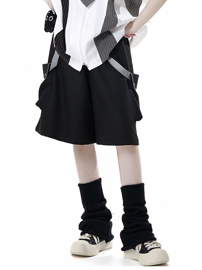 Black Techwear Strap Details Cargo Pockets Shorts
