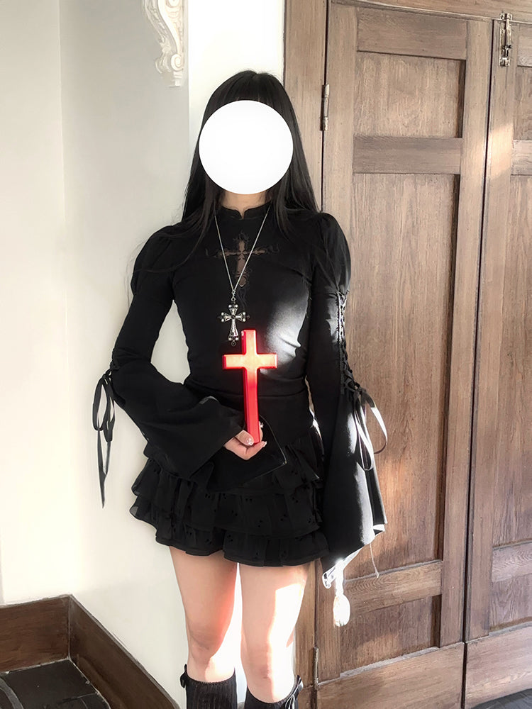 Indulge in the timeless elegance of our Black Three-Tiered Lace Trim Mini Skirt. This exquisite piece showcases a playful, yet sophisticated design with its layered silhouette, reminiscent of a decadent tiered cake.