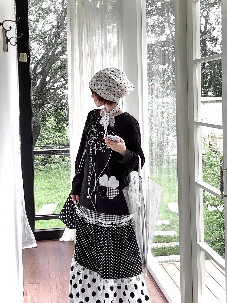 Embrace a touch of whimsy with our Black Top featuring a charming Clover Appliqué. This top combines elegance and playful style, perfect for those who adore unique details.