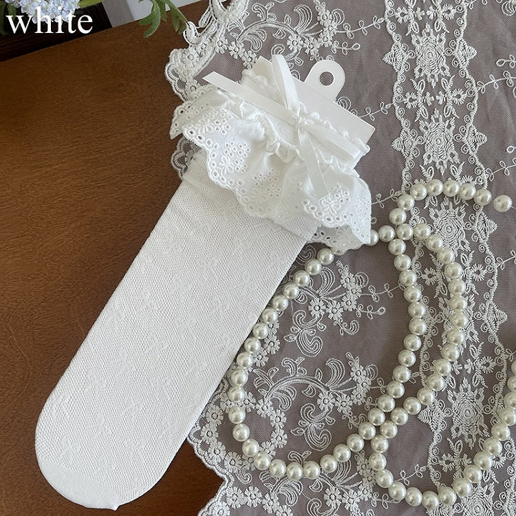 Black/White/Apricot Bowknot Details Lace Trim Hollow-out Socks