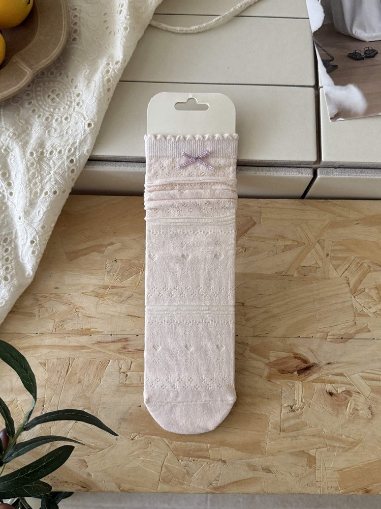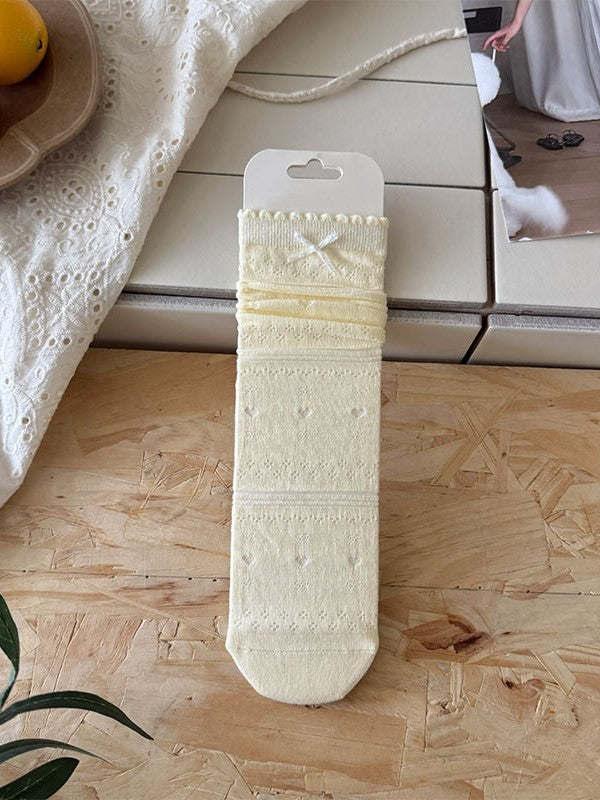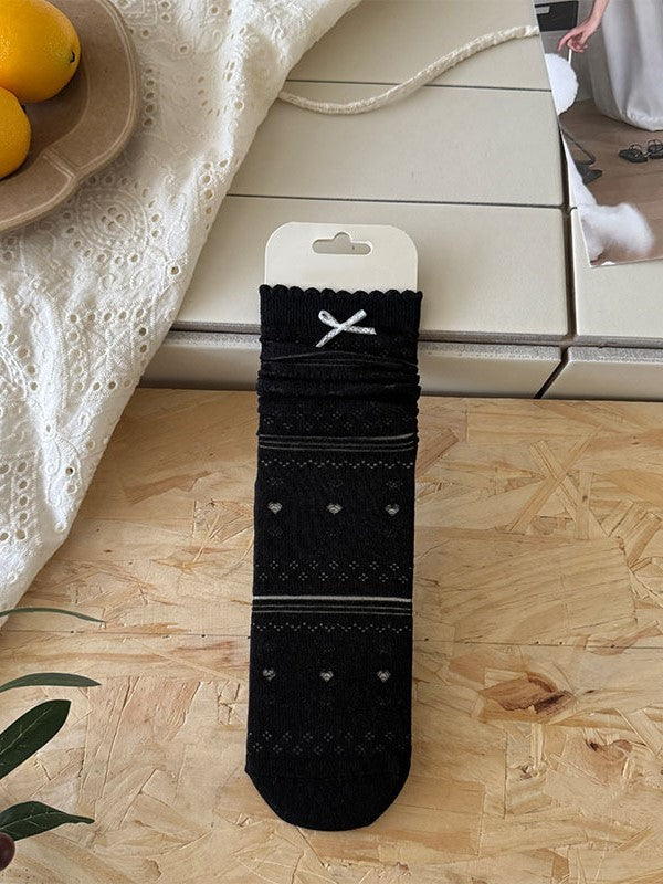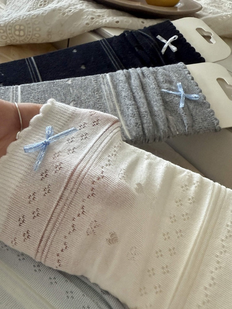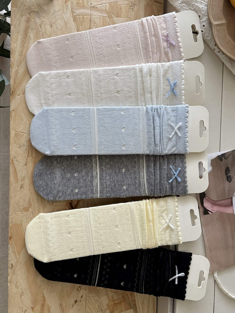 Black/White/Blue/Pink/Yellow/Grey Calf Socks With Bowknot Details
