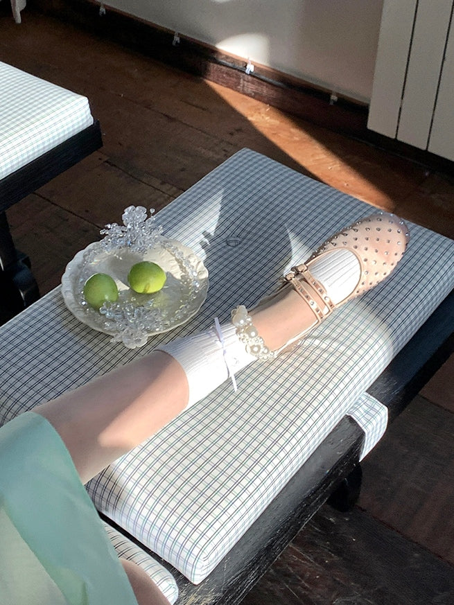 Black/White Cut-out Design Bowknot And Beaded Decorated Calf Socks