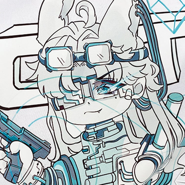 This hoodie features a striking cyberpunk-inspired graphic print of a fox-eared boy. The hood comes with an adjustable drawstring design, adding both functionality and style. Additionally, the hoodie is equipped with convenient front pockets.