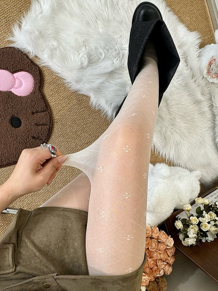 Black/White Four-leaf Clover And Diamond Pattern Tights