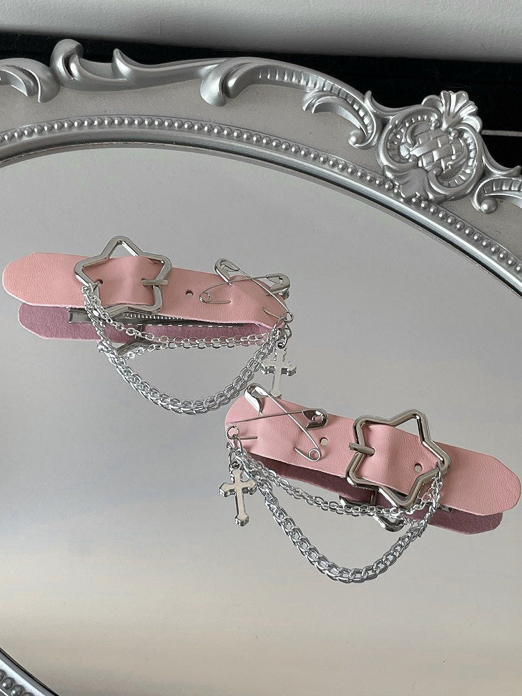 Black/White/Pink Cross Charm Pin Decorated Star Buckle Hairclips