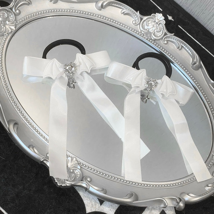 Black/White/Pink Rhinestone Decorated Bat Wing Design Bowknot Hair Ties