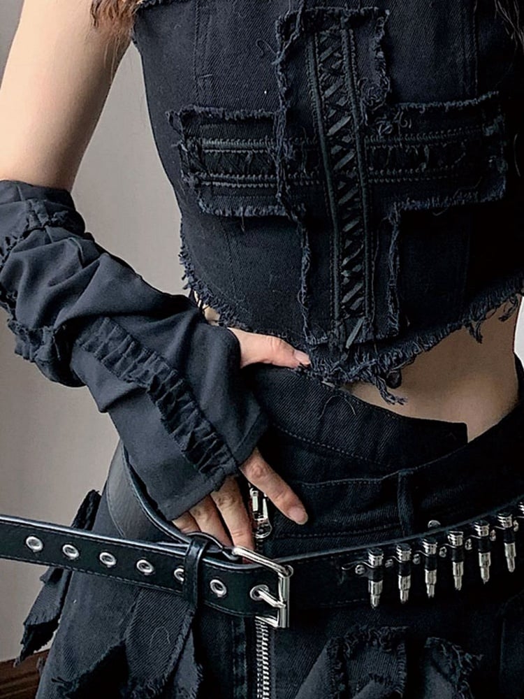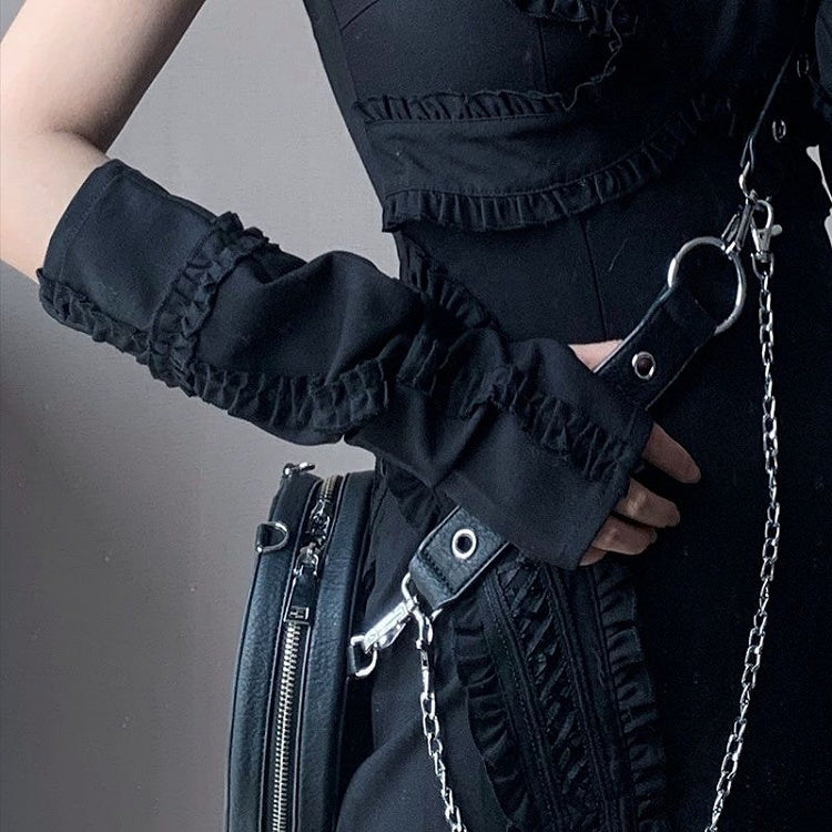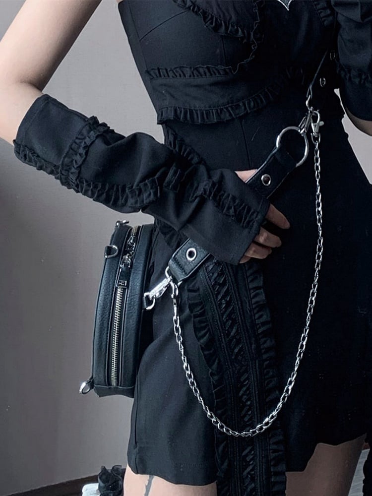 Black/White/Red Sleeves Ruffle Trim Cross Design