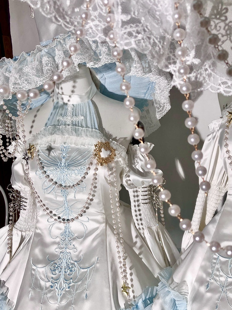 Blue and White Cross Illusion Halter Neck Witch Lolita Backless Dress Gothic JSK Halloween Outfit
