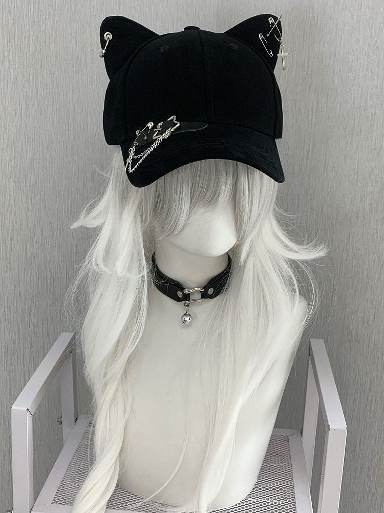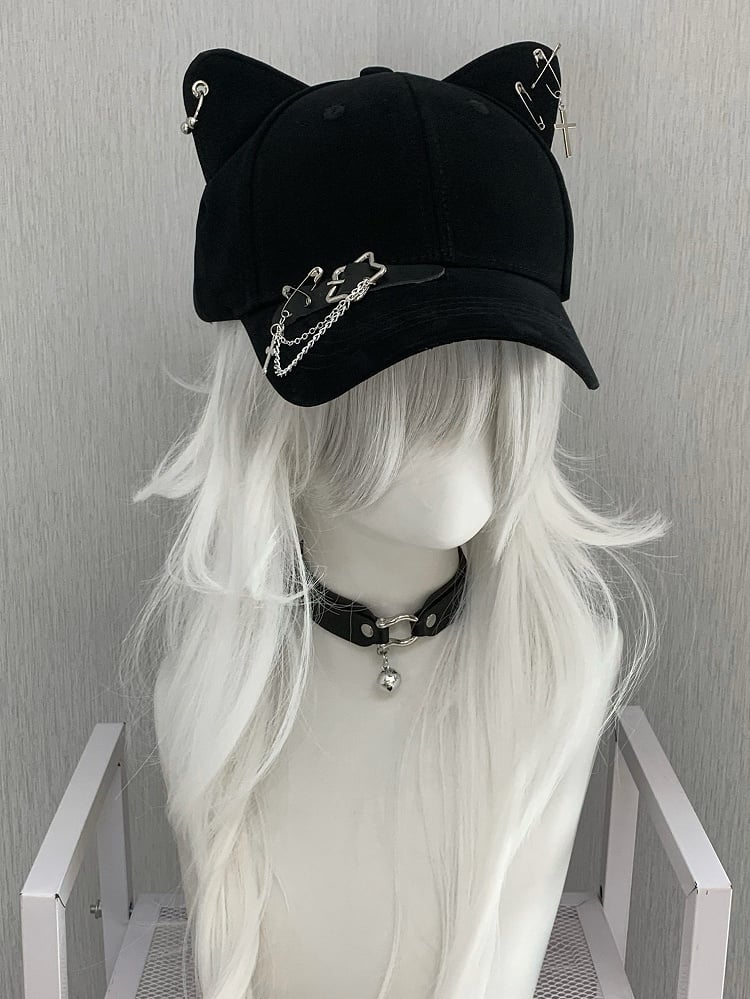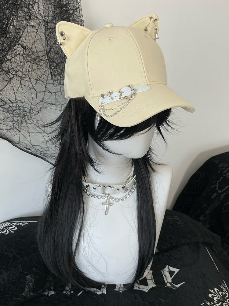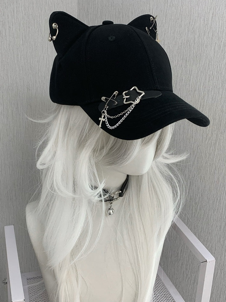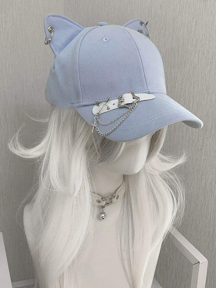 Blue/Black/Yellow Cross Charm Pin Decorated Star Buckle Kitty Ear Cap