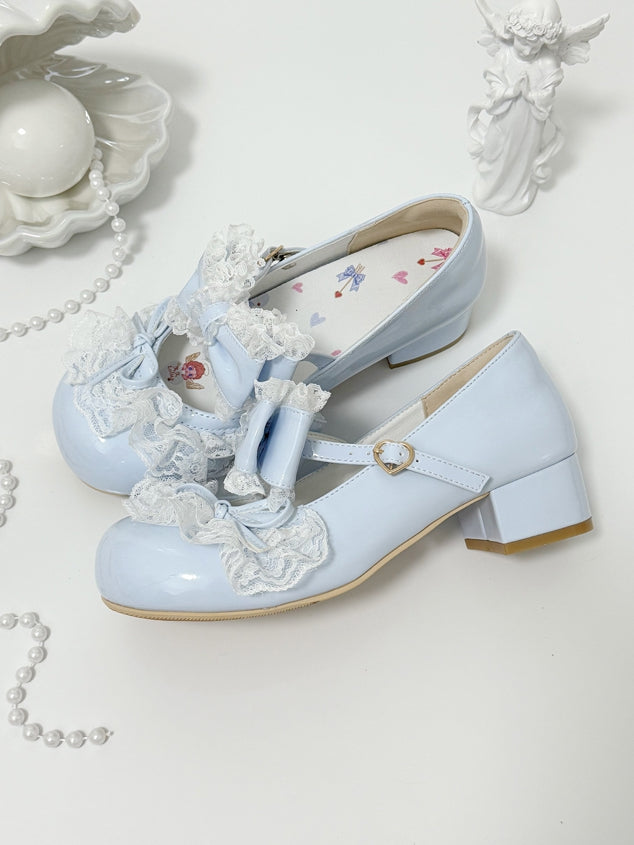 Step into a world of whimsy and charm with these Sweet Lolita style shoes, designed for those who adore a touch of elegance in their wardrobe. Featuring a low heel for comfortable wear, these round-toe shoes are adorned with delicate bow details that add a playful yet sophisticated touch. The lace trim enhances the overall aesthetic, giving them a fairy-tale allure. A heart-shaped buckle not only secures the fit but also adds a romantic flair, making these shoes a perfect addition to any Lolita or kawaii-inspired outfit. Ideal for both casual outings and special occasions, these shoes are a must-have for fashion enthusiasts who appreciate the beauty of intricate details and classic Lolita style.