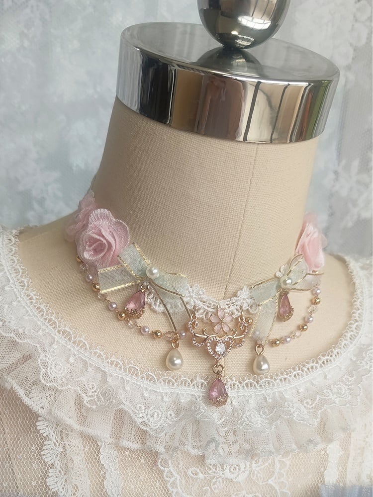 ● Bead Details / Floral Embroidery / Lace-up Detail / Ruffle Trim / Smocked Elastic at Back