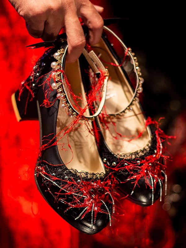 Step into the enchanting world of Gothic Lolita fashion with these striking black and red chunky heels. Available in both 5CM and 8CM heights, these shoes offer a bold statement with their unique design. Adorned with a captivating beaded charm and heart-accented spider design, these heels are a perfect blend of edginess and elegance. The delicate lace trim adds a touch of classic Lolita charm, making them an ideal choice for those who love to mix gothic allure with a hint of sweetness. Perfect for completing any Gothic Lolita ensemble or adding a dramatic twist to your wardrobe.