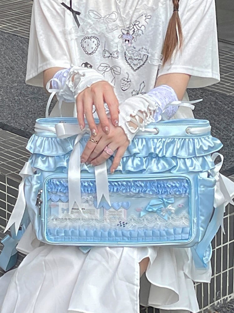 Blue Ruffle Trim Bow Accents Balletcore Ita Backpack