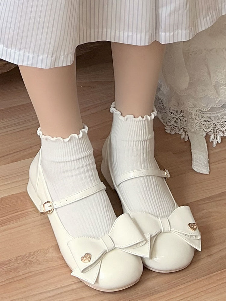 Bow at Top White Round Toe 3cm Heel Sweet Mary Janes