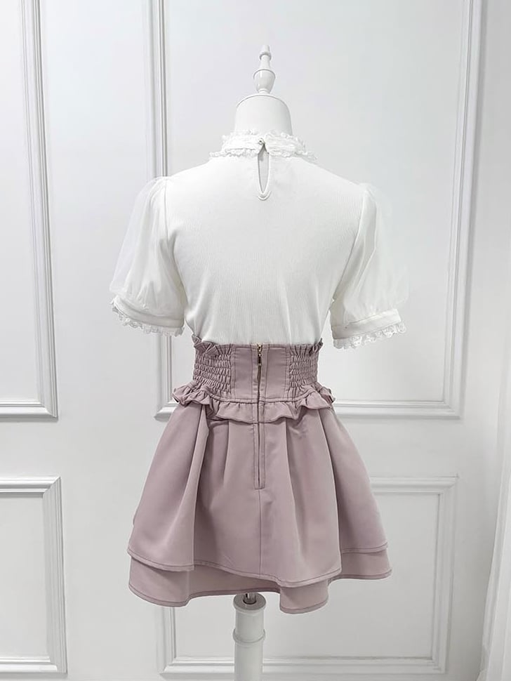 Bowknot and Rhinestone Decoration Choker Design White Jirai Kei Blouse