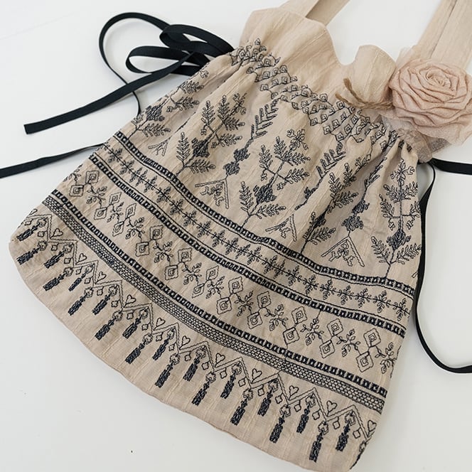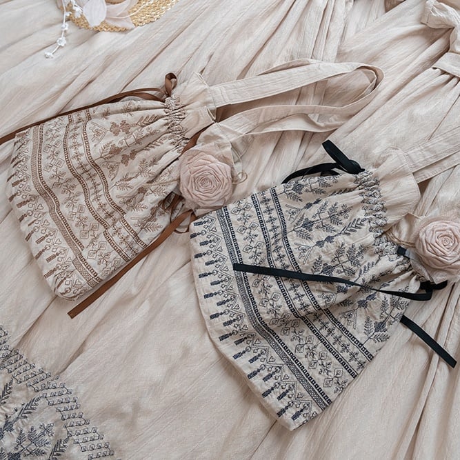 Brown / Blue Vintage Embroidery Handbag with Floral Brooch