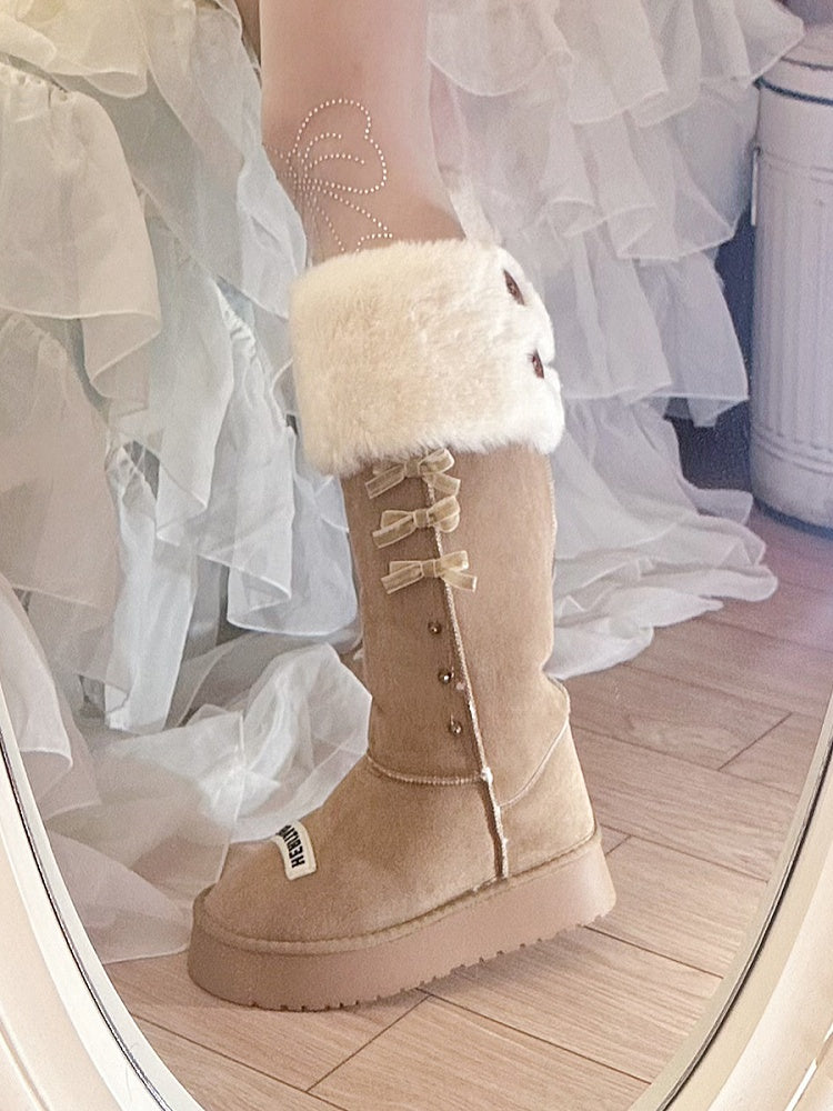 Brown Bow Accents Platform Winter Ugg Boots