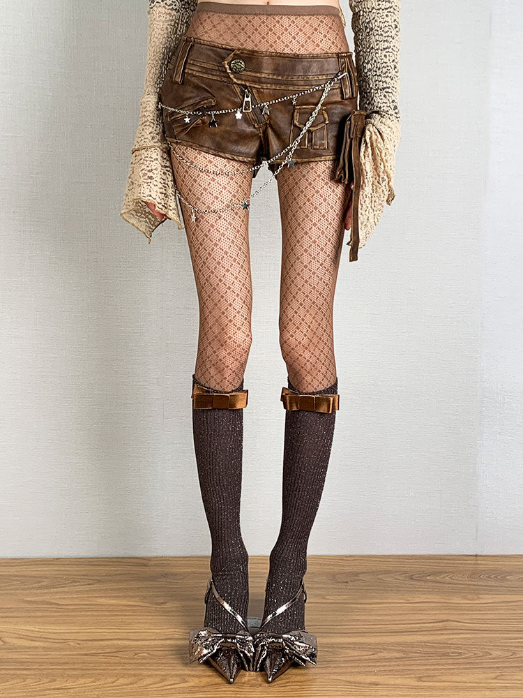 Brown Diamond Pattern Wasteland Punk Tights/ Under Knee Stockings