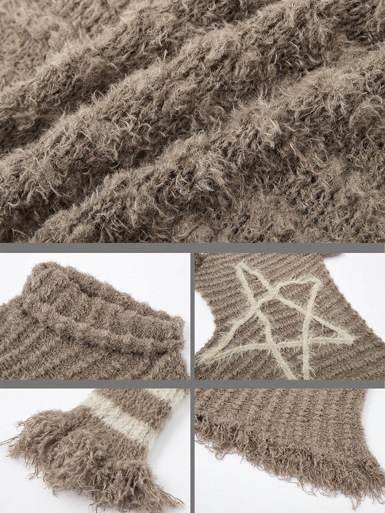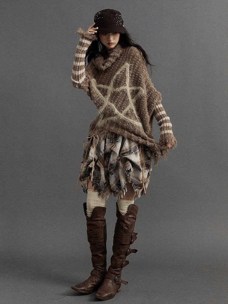 Brown Vintage Punk Batwing Sleeves Loose Five-pointed Star Sweater