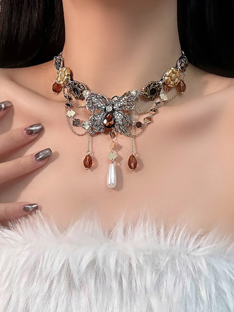 Butterfly Pendant Baroque Necklace Bronze Choker