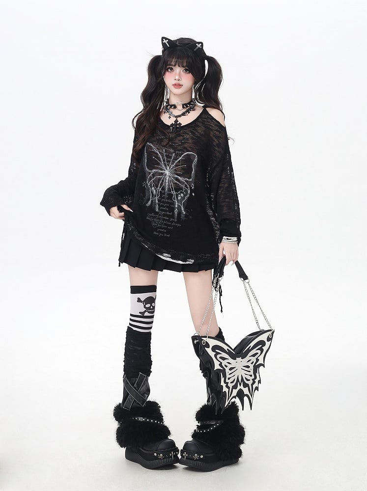 Transform your wardrobe with this enchanting Butterfly Print Cutout Shoulder Knit Cover-Up. Perfect for adding a whimsical touch to your ensemble, this cover-up features a delicate butterfly print that dances across soft, breathable knit fabric. The cutout shoulder design adds a hint of modern allure, making it an ideal choice for layering over your favorite tops or dresses.