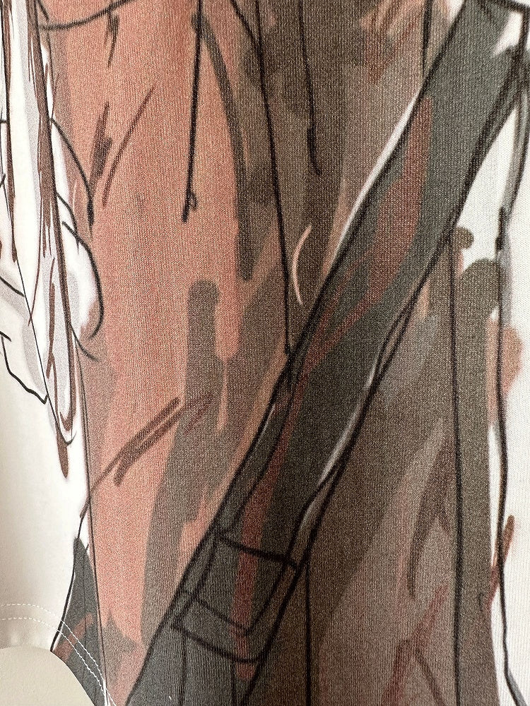 Cartoon Boy Print Khaki and White T-shirt