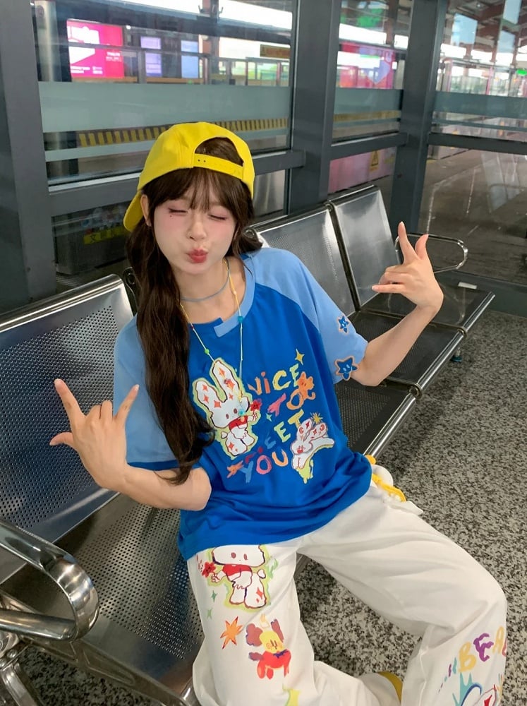 Hop into style with these adorable white low-waist wide-leg jeans, featuring a playful cartoon bunny print. Perfect for adding a touch of whimsy to your wardrobe, these jeans combine comfort and fashion effortlessly.