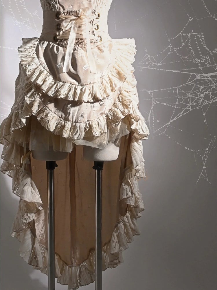 Champagne High Waist Ruffles Train High-low Skirt with Floral Pattern