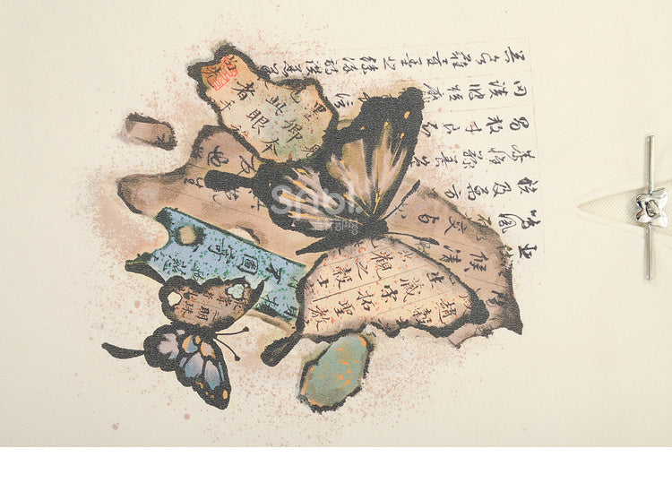 Cheongsam Style Butterfly Print Black/Apricot Banded Collar Sweatshirt