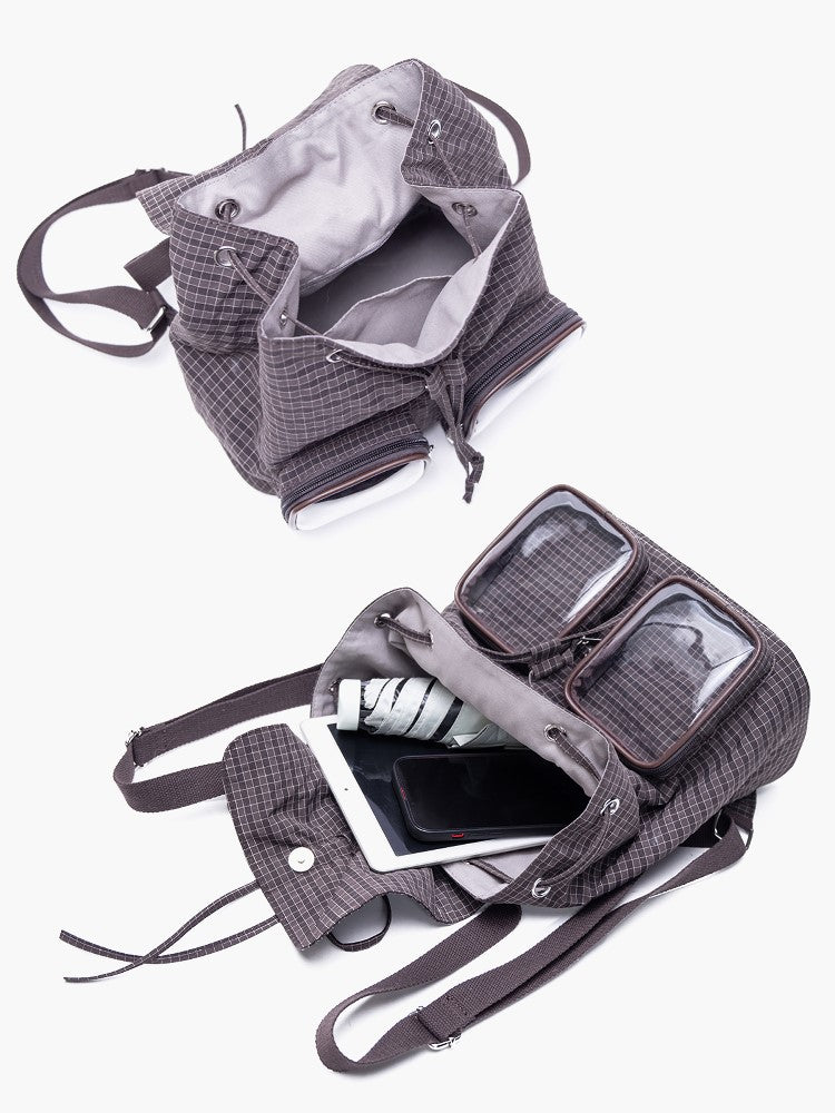 This Chic Brown Mini Double-Layer Ita Bag With Charming Bow Drawstring seamlessly blends style and function. Its two palm-sized compartments offer organized space for essentials, while the drawstring closure with a bow and magnetic snap flap ensure security. Lightweight and soft, it’s a practical yet kawaii accessory for the fashion-forward.