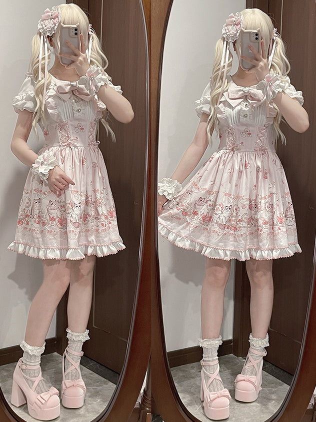 Clearance-Pink Jirai Kei Rhinestone And Bowknot Decorated Lace Trim Heart-shaped Hairclip