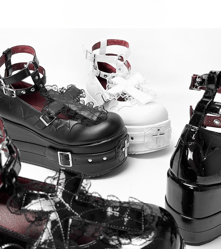 Gothic Platform Shoes with Bat Wing Embroidery: Step into the dark and whimsical world of gothic fashion with these striking platform shoes.
