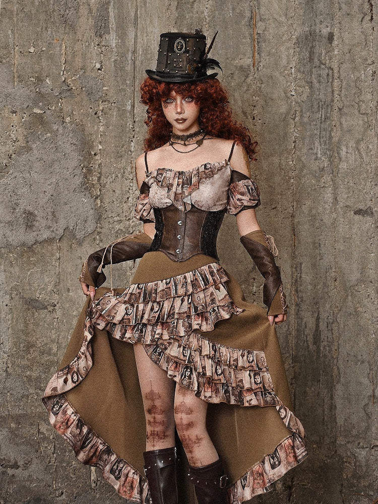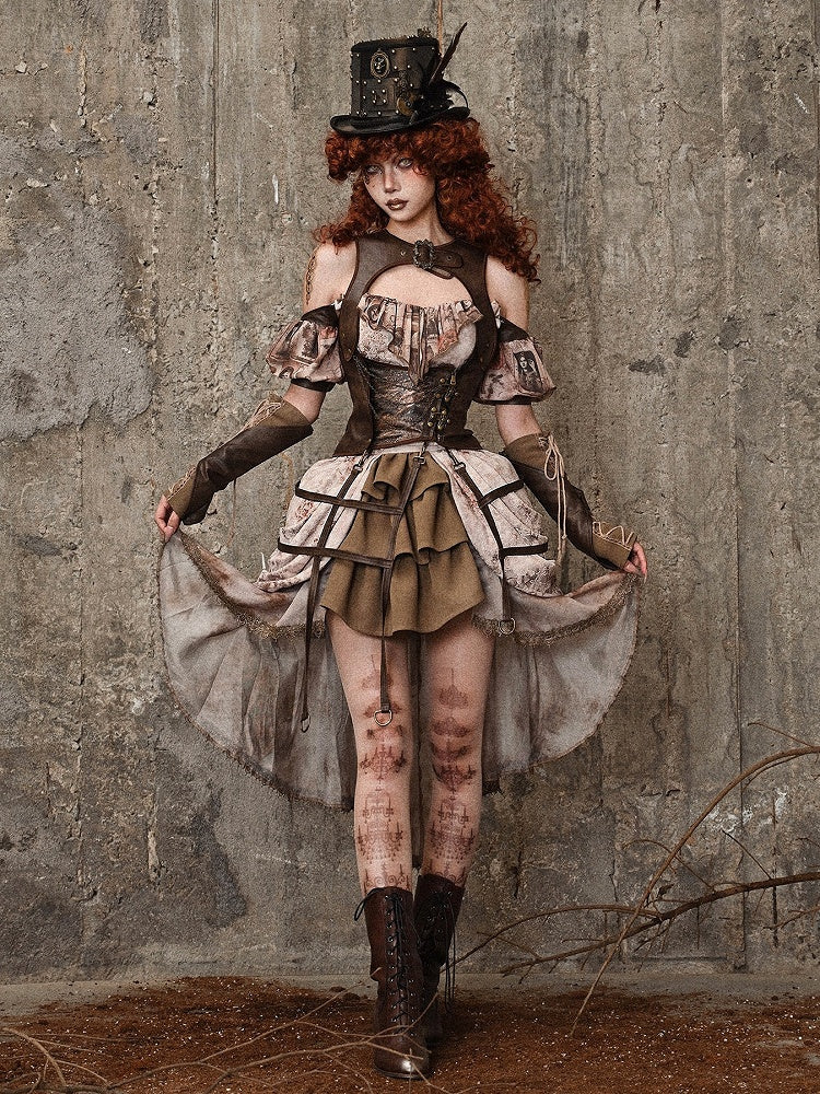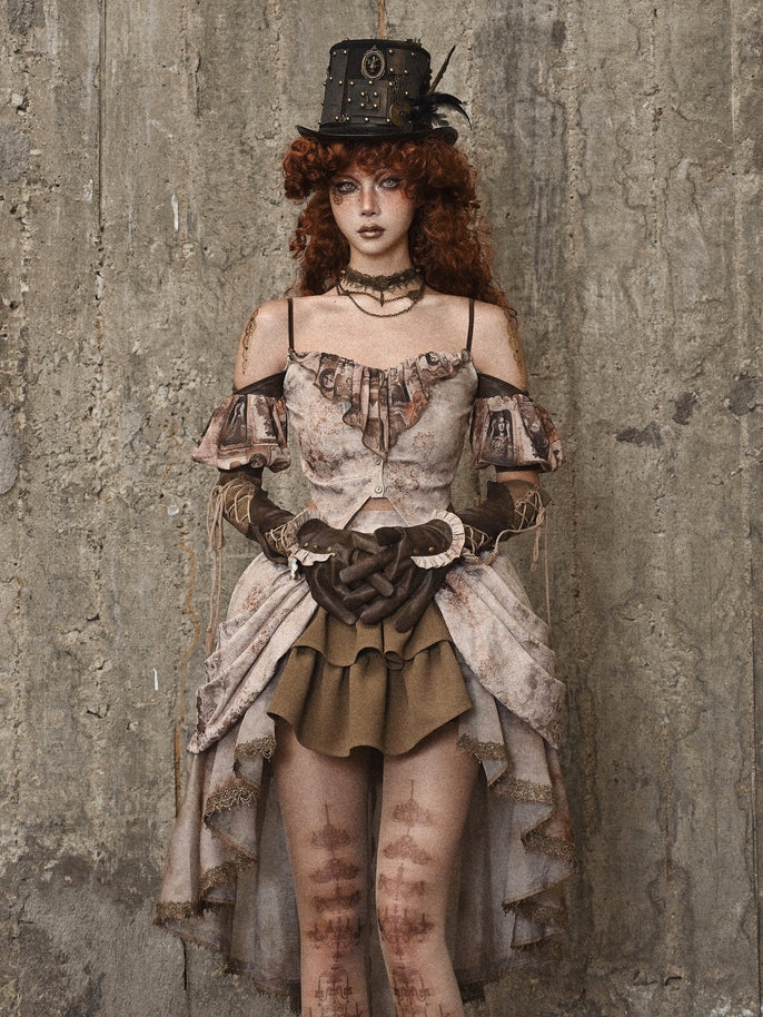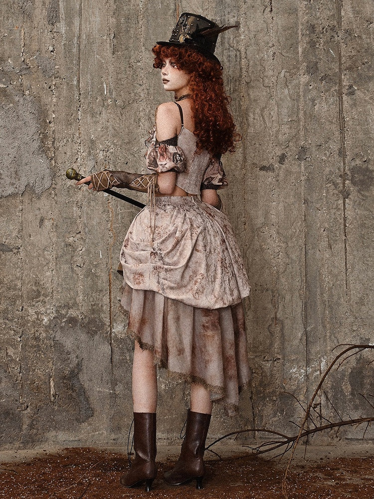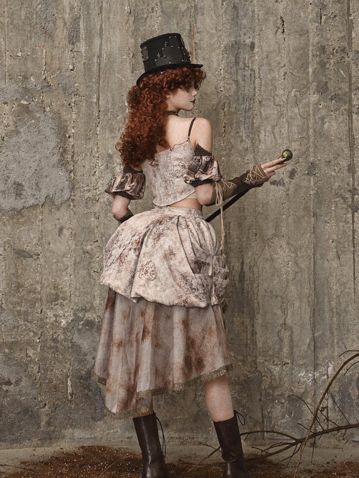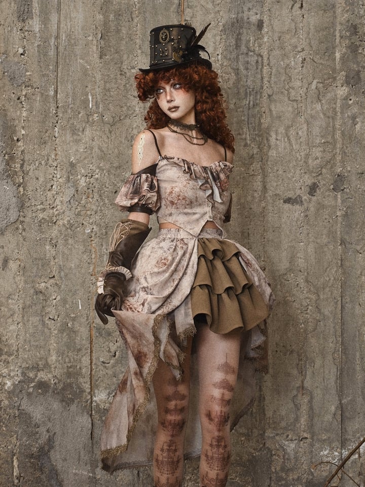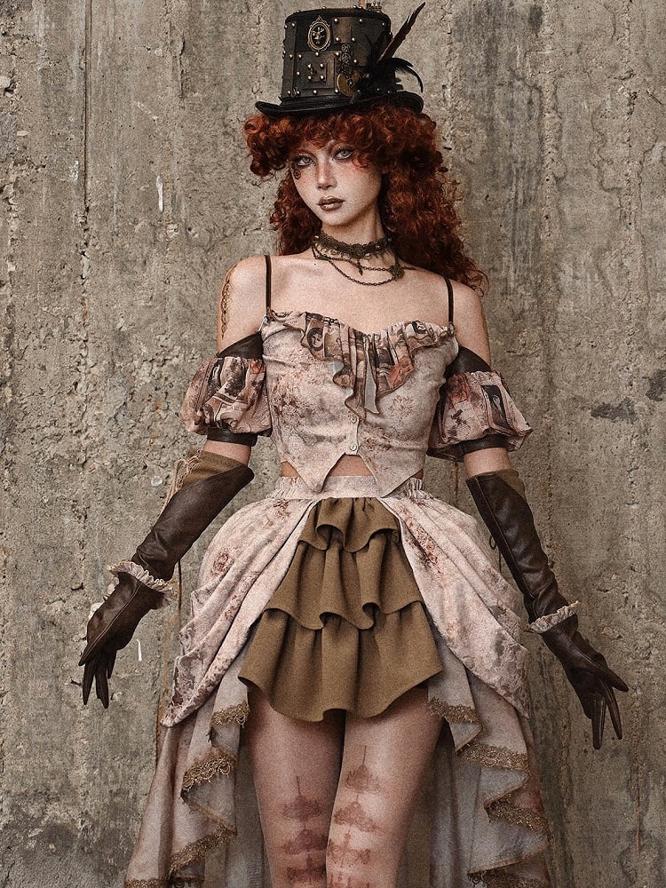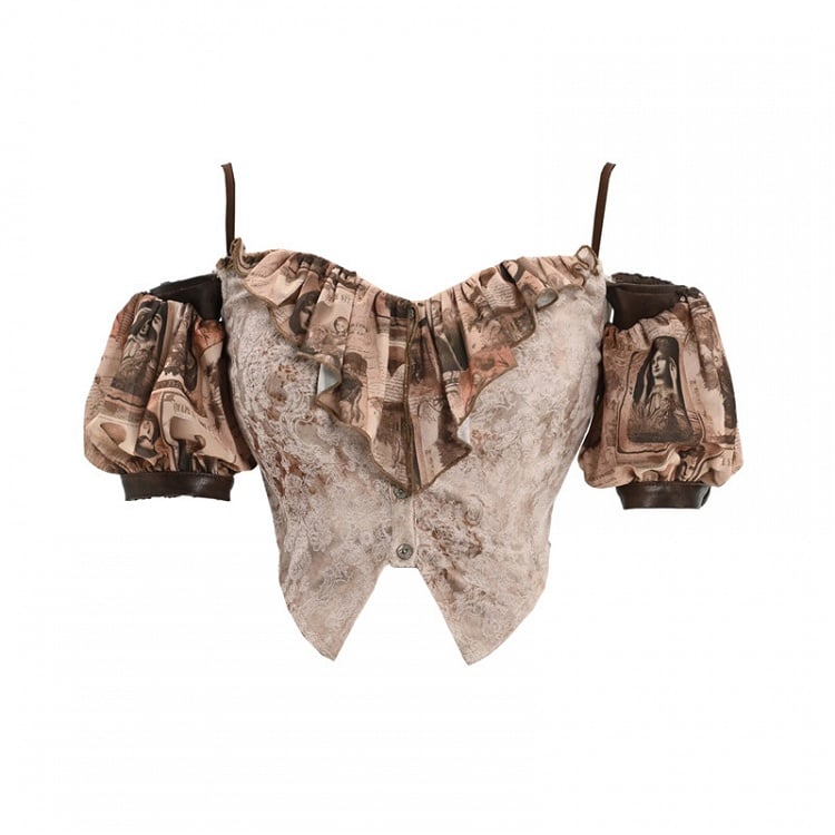 Clearance - Size M for Bust 82-90cm Pictorial Print Neckline Summer Cami Top with Detachable Puff Sleeves