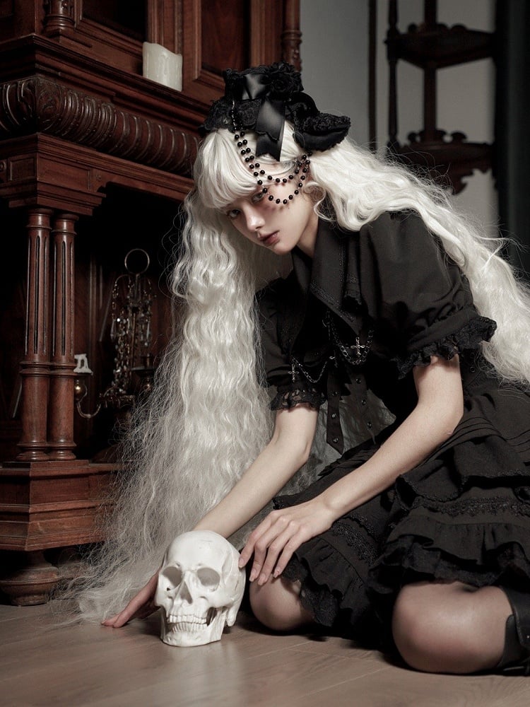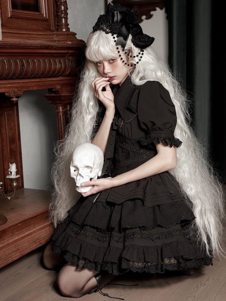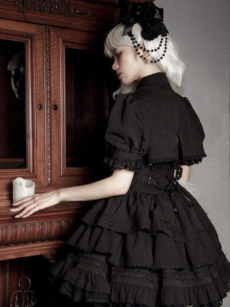 Clearance-Size M for Bust 96CM Black Gothic Chain Details Bolero