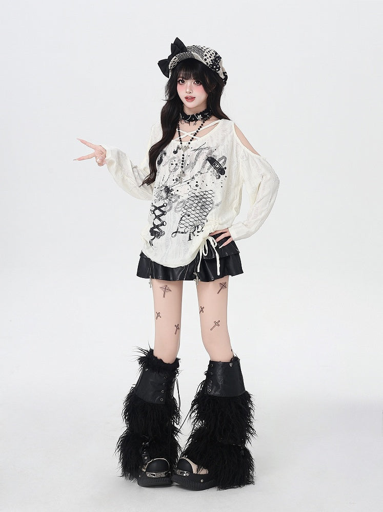 ● Criss-cross Design / Cutout Shoulder / Drawstring Waist