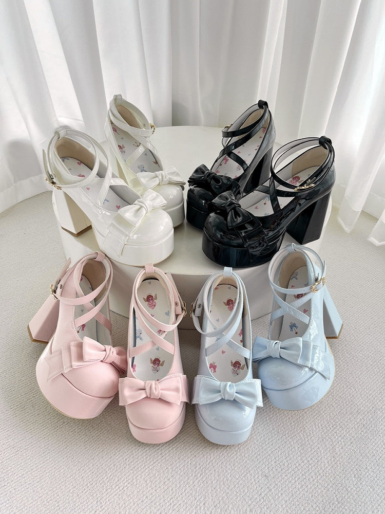 Crisscross Ankle Strap Black Bow at Top 11cm High Heels