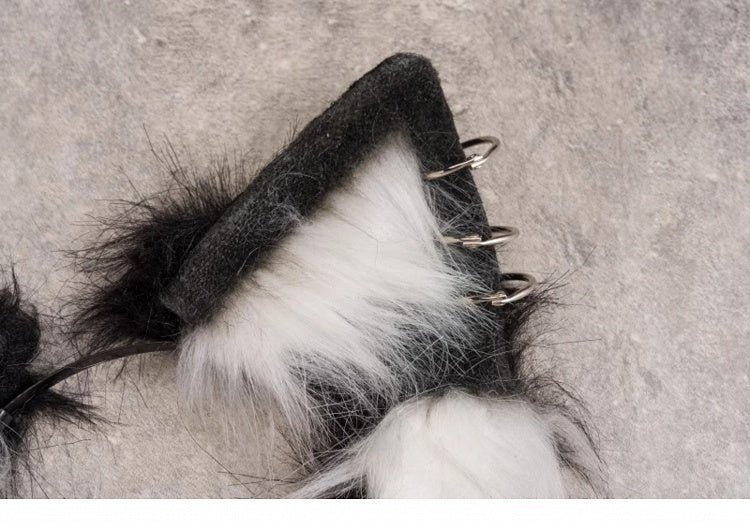 Cross Chains Decorated Black and White Gothic Kitty Ears KC