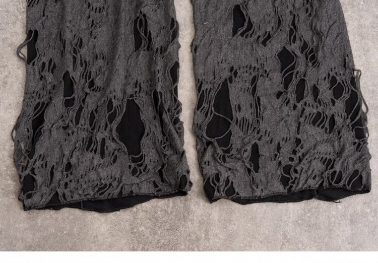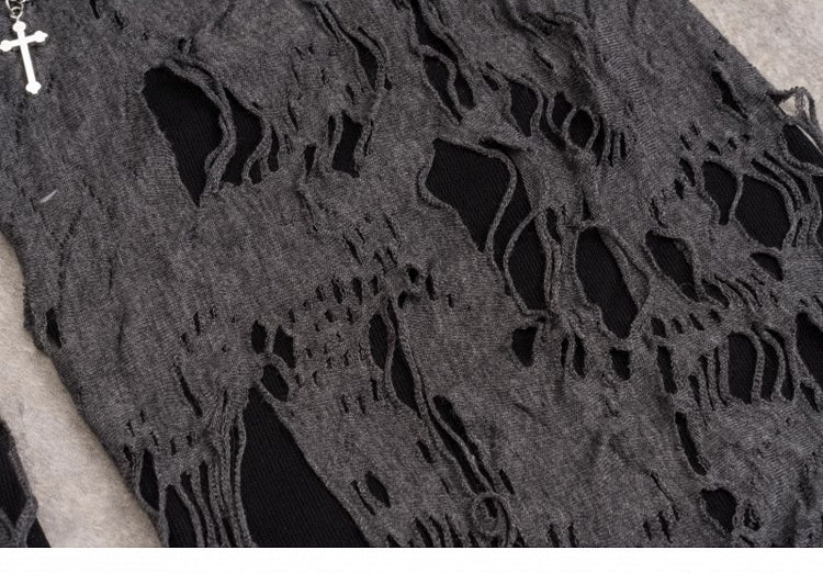 Cross Decorated Distressed Holes Dark Gray Gothic Leg Warmers
