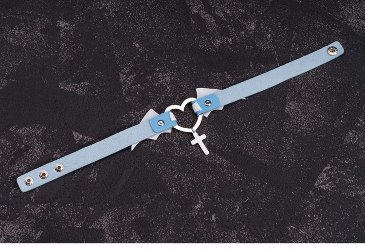 Cross Pendant Blue and White Handmade Bat Wings PU Choker