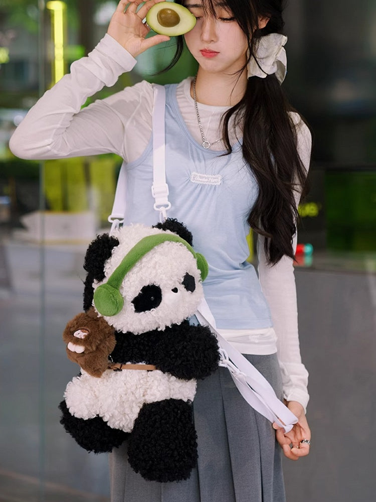 Cute Curly Plush Panda Black&White Backpack/Crossbody Bag+ Keychain