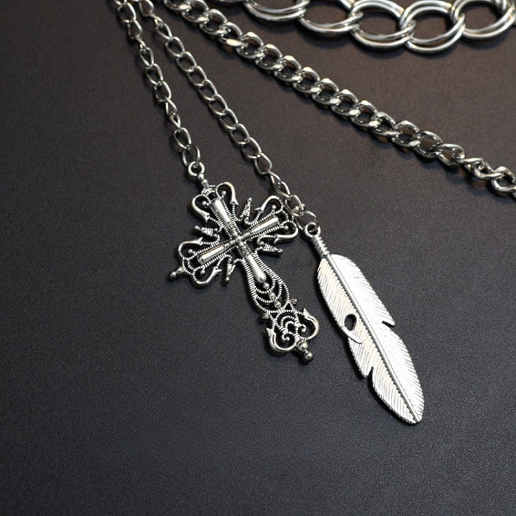 Cyberpunk Gothic Cross Waist Chain+PU Belt