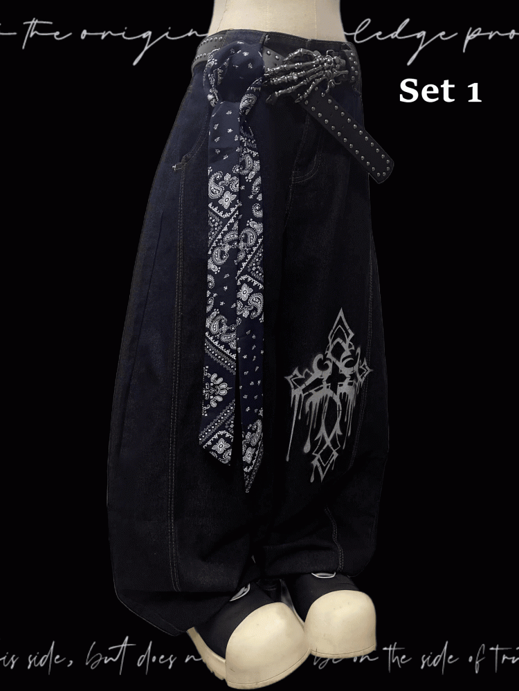 Set 3:This price is for a pair of pants and a blue accessory and a skeleton belt.