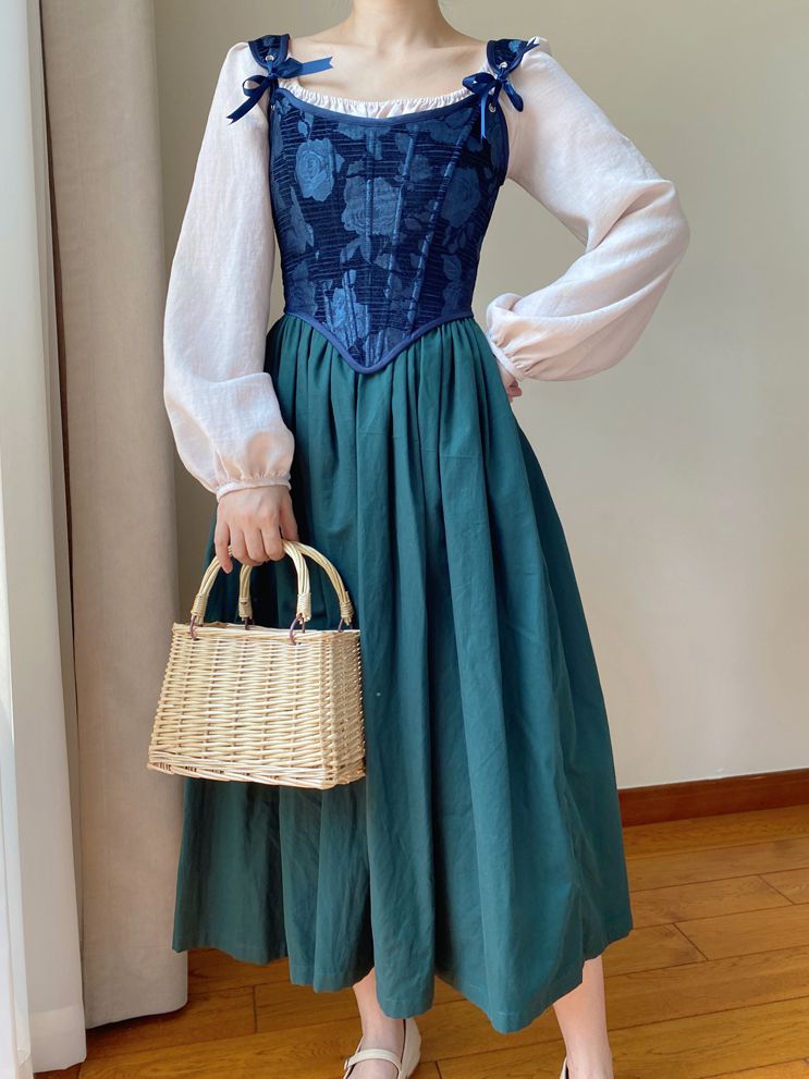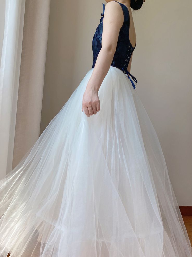Dark Blue Scoop Neckline Corset with Floral Pattern