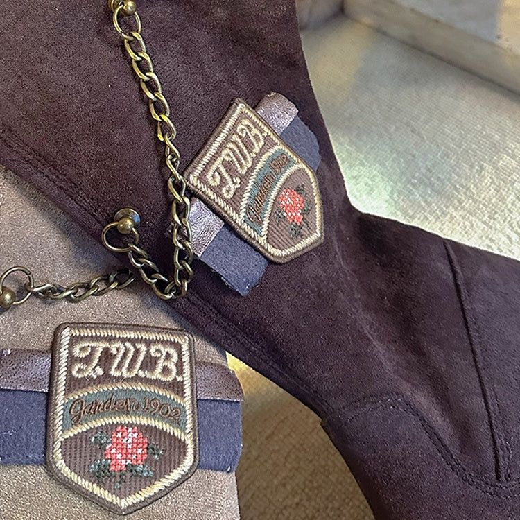 Dark Brown Chain and Embroidered Badge Platform Boots