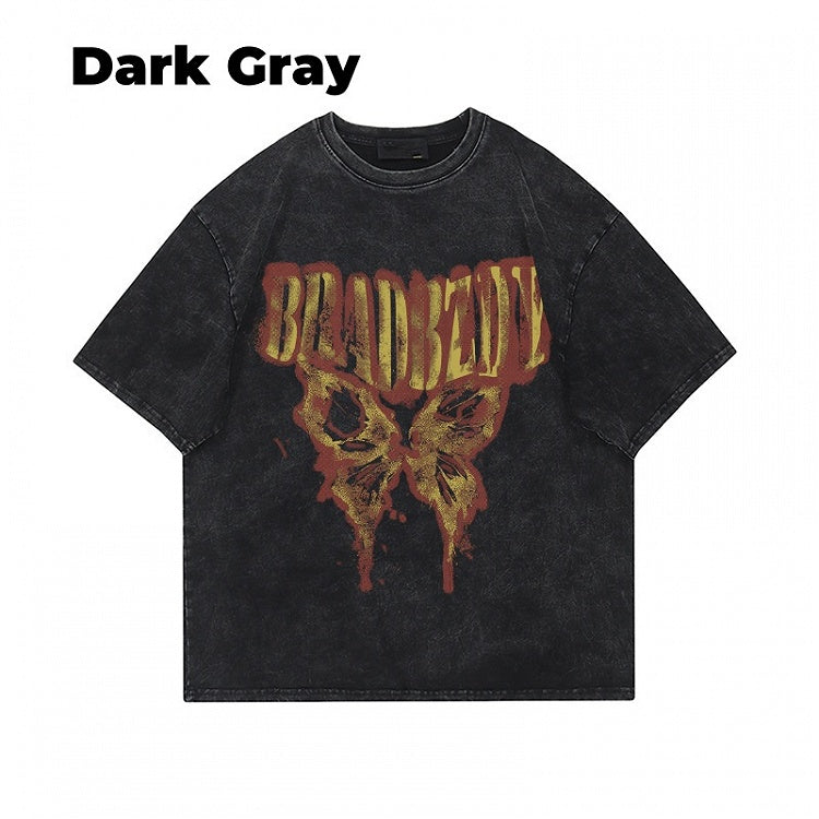 Dark Gray/Brown/Black/White Butterfly Print Vintage Loose T-Shirt