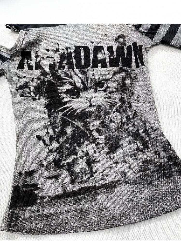 Elevate your streetwear game with this striking dark grey hoodie, designed for those who embrace alternative fashion. Featuring a unique off-shoulder cut, this long-sleeve piece combines comfort with a rebellious edge. The eye-catching striped pattern, paired with bold graphic prints, adds a distinct flair that sets you apart from the crowd. Perfect for layering or making a statement on its own, this hoodie is a must-have for anyone looking to infuse their wardrobe with a touch of subculture style.