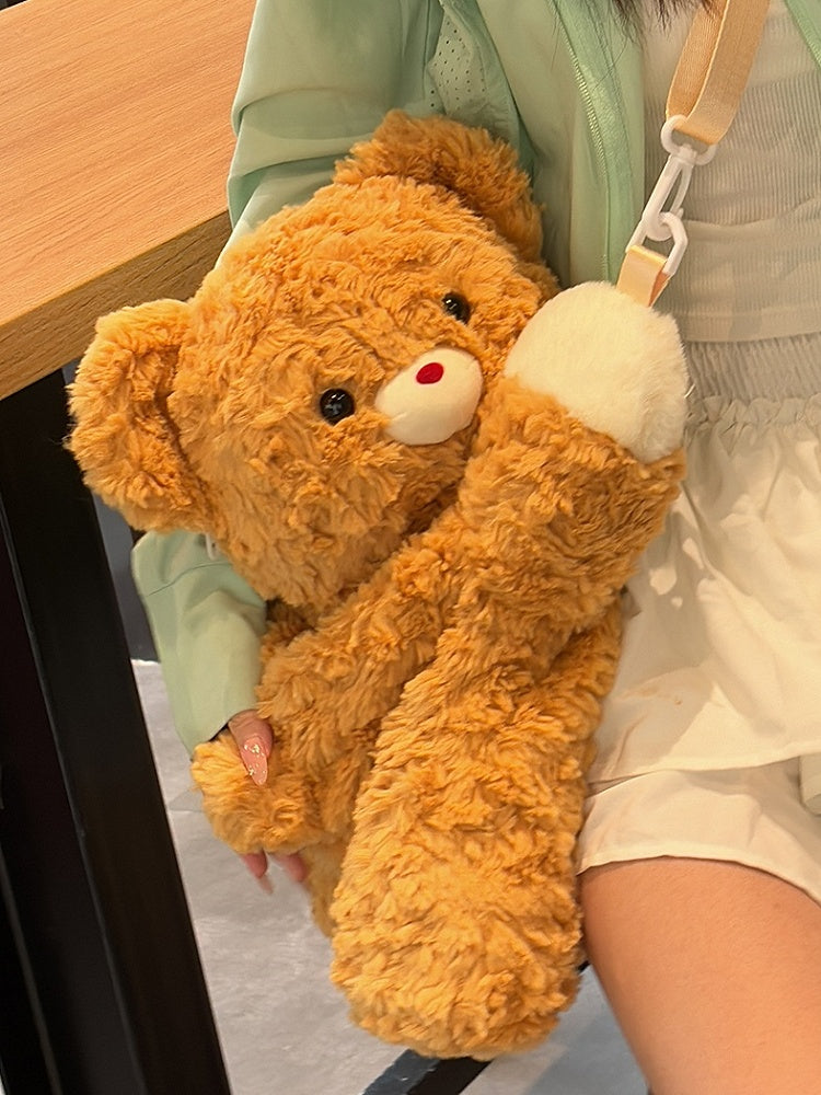 Dark Yellow Bear Plush Backpack Crossbody Bag Small/Middle/Large Size