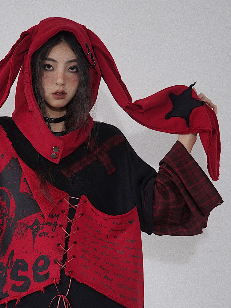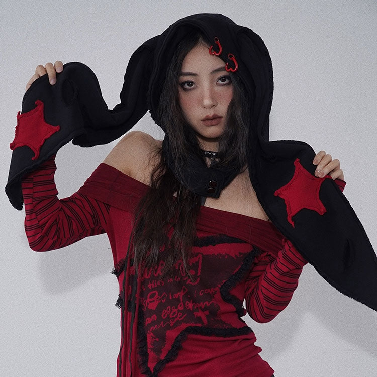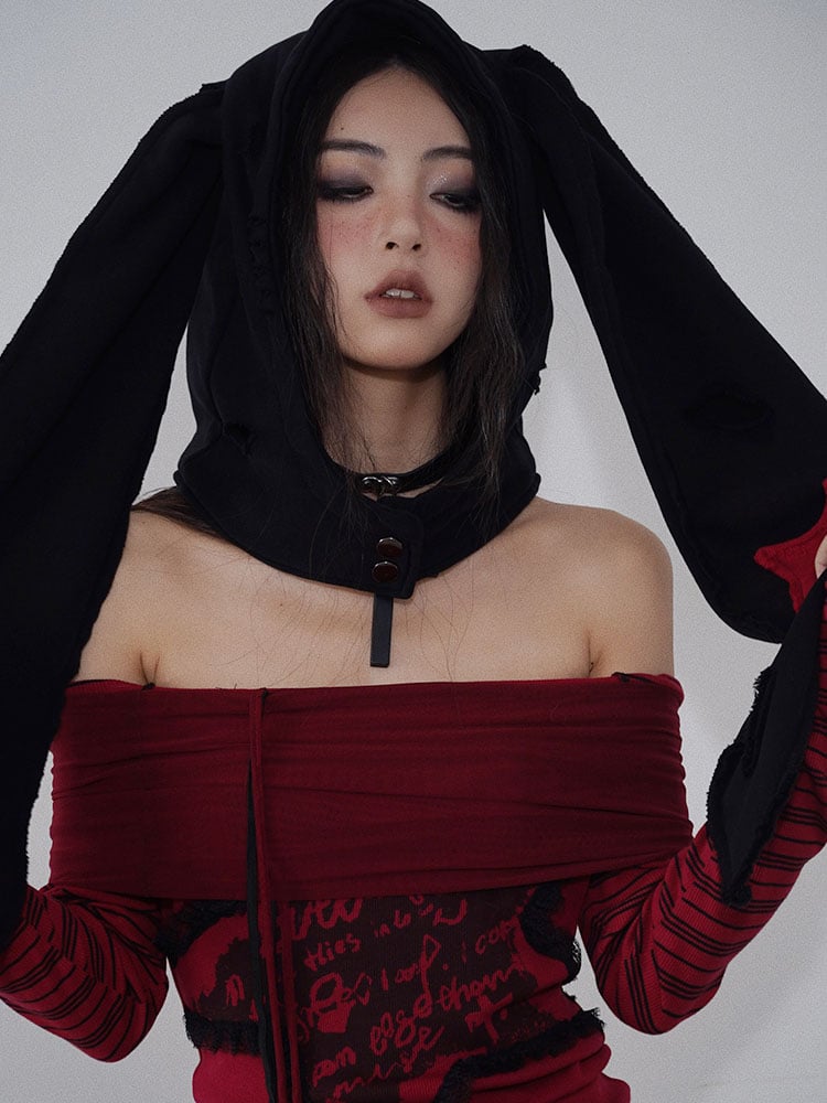 Distressed Holes Punk Bunny Ears Hat Black/Red