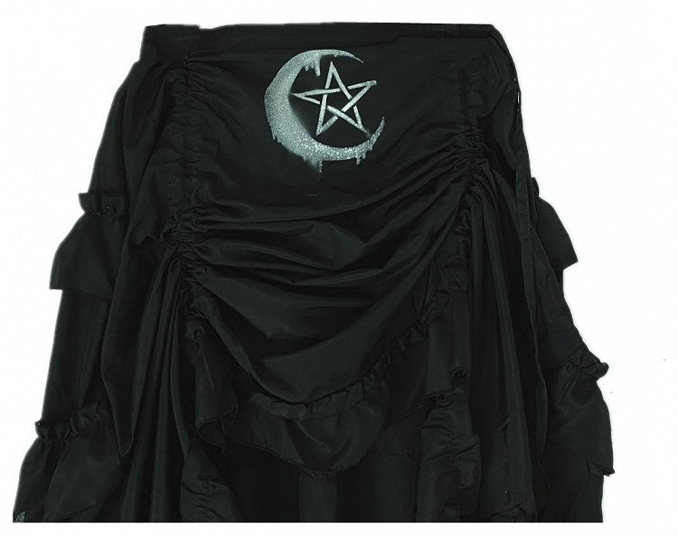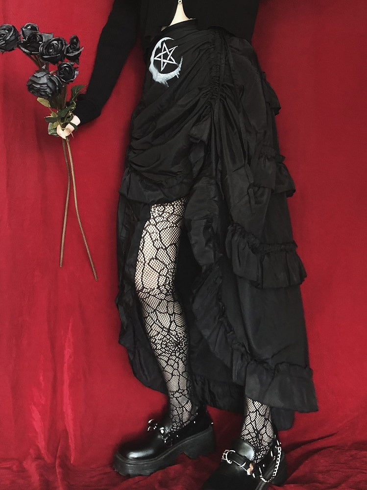Drawstring Hem Punk Black Ruffles High-low Skirt