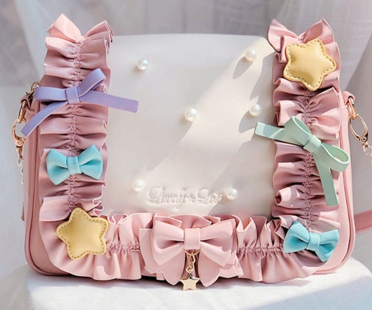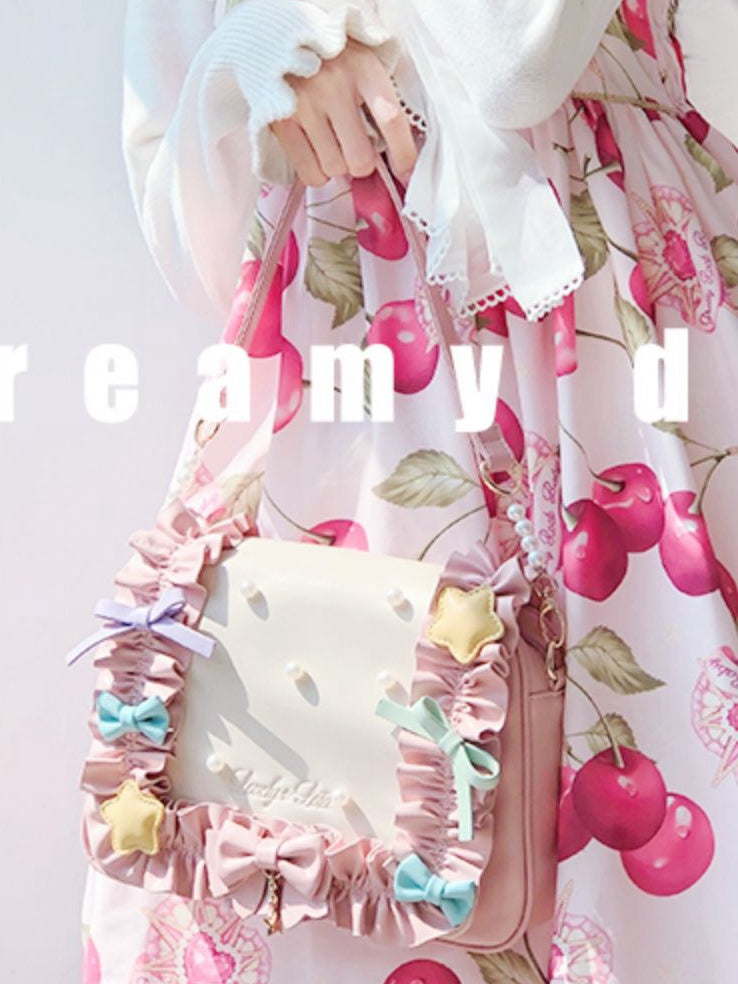 Fold-over Flap Creamy Dots Bowknots Shoulder Bag
